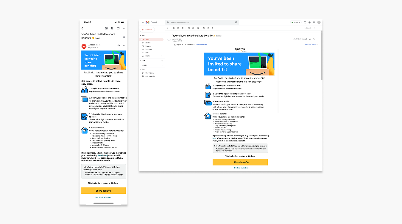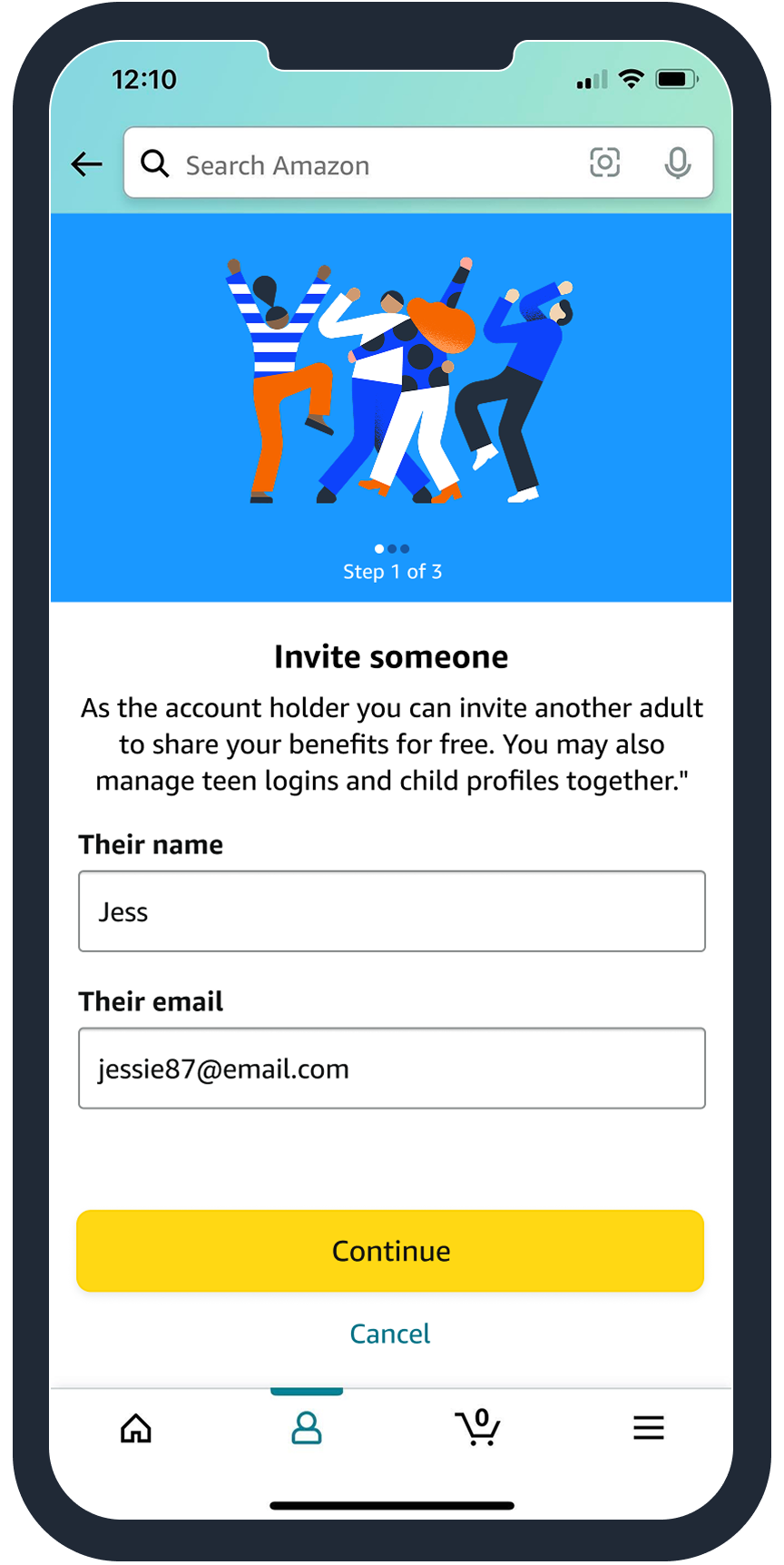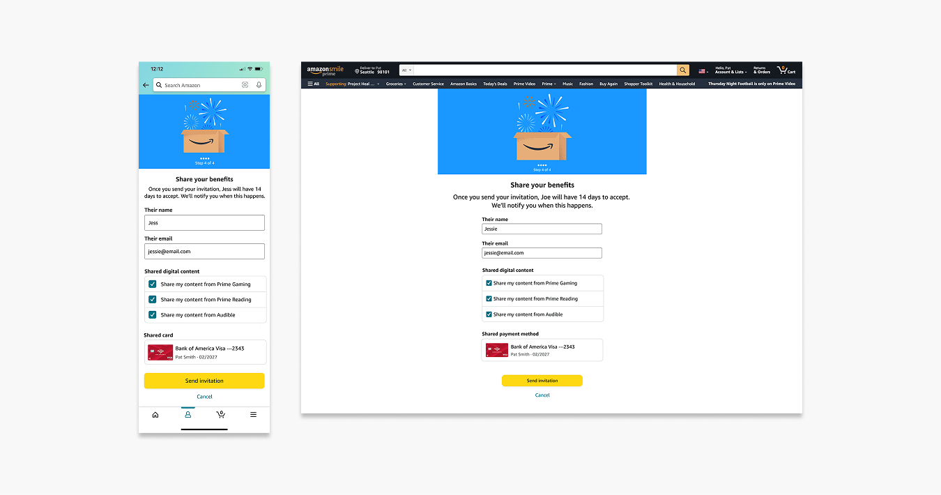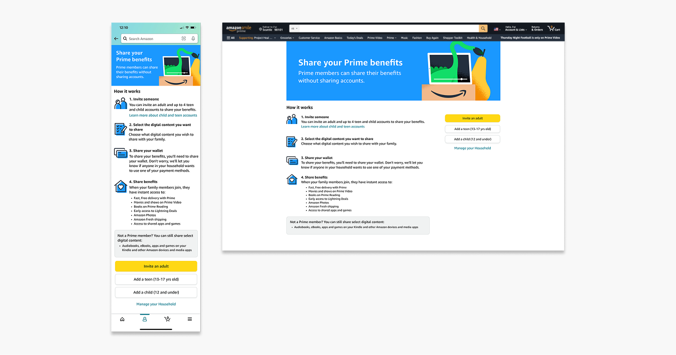 Prime Worldwide's leadership intiative to improve the entire Household experience had us focus on the experience in place for Prime members who were inviting an adult to share their Prime account.